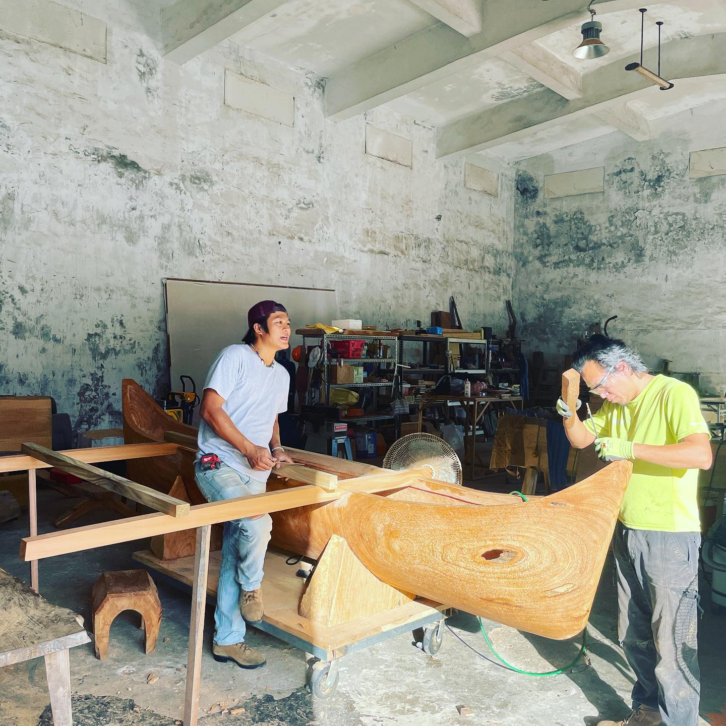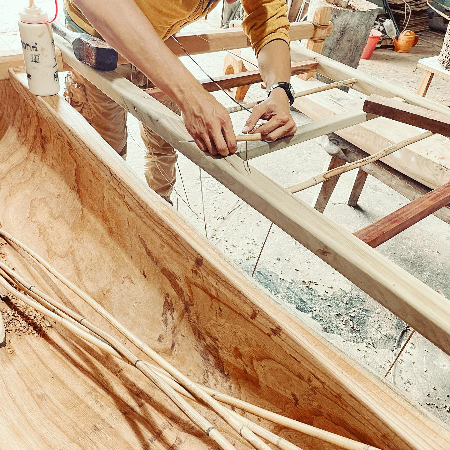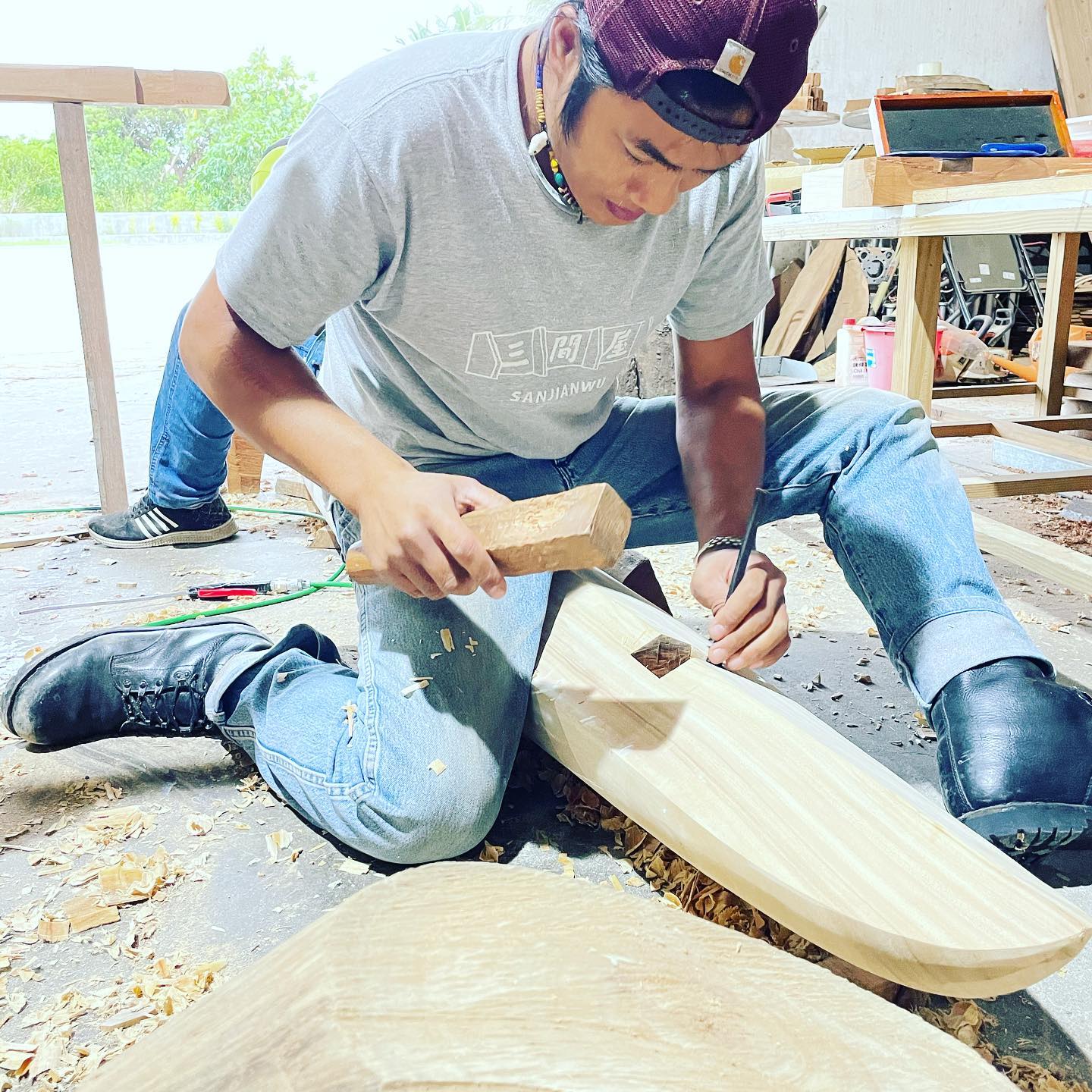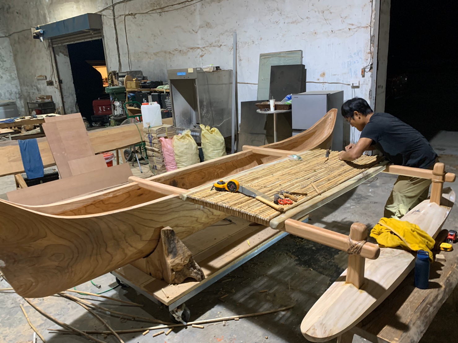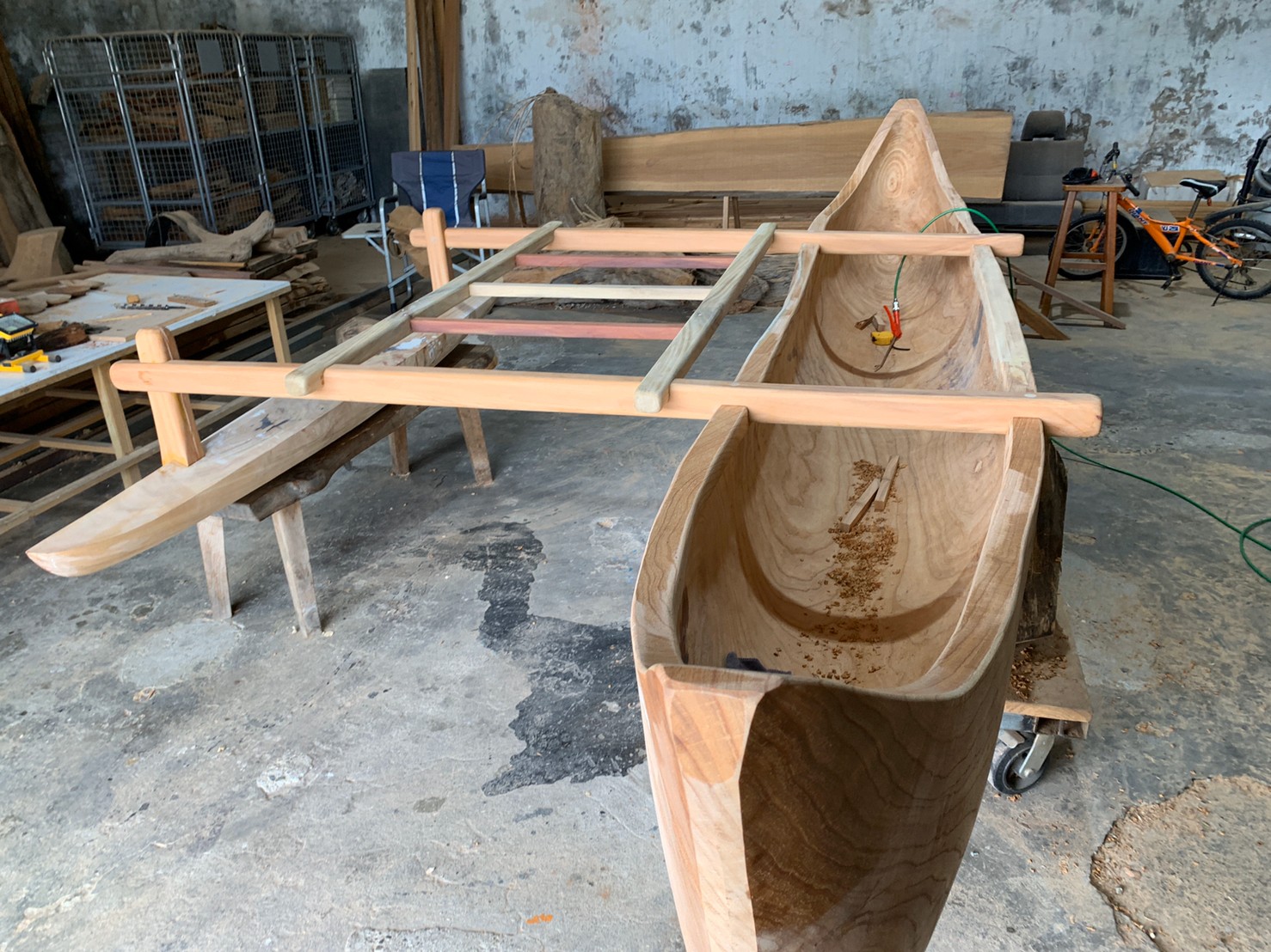 我們邀請藝術家拉飛.邵馬合作,去年的展演計畫已經創作了一艘阿美族獨木舟具象徵概念的主體,但離真正下海航行還缺了獨特的部件,台灣阿美族遠航的船體已經遠不可考,獨木舟最早的記錄也是在日治時期由日本人所記載,然而更早的海上活動工具卻已不復見。期望在此次的計劃下,能夠將獨木舟的舷外浮桿製作出來,完整船體的構造。 |