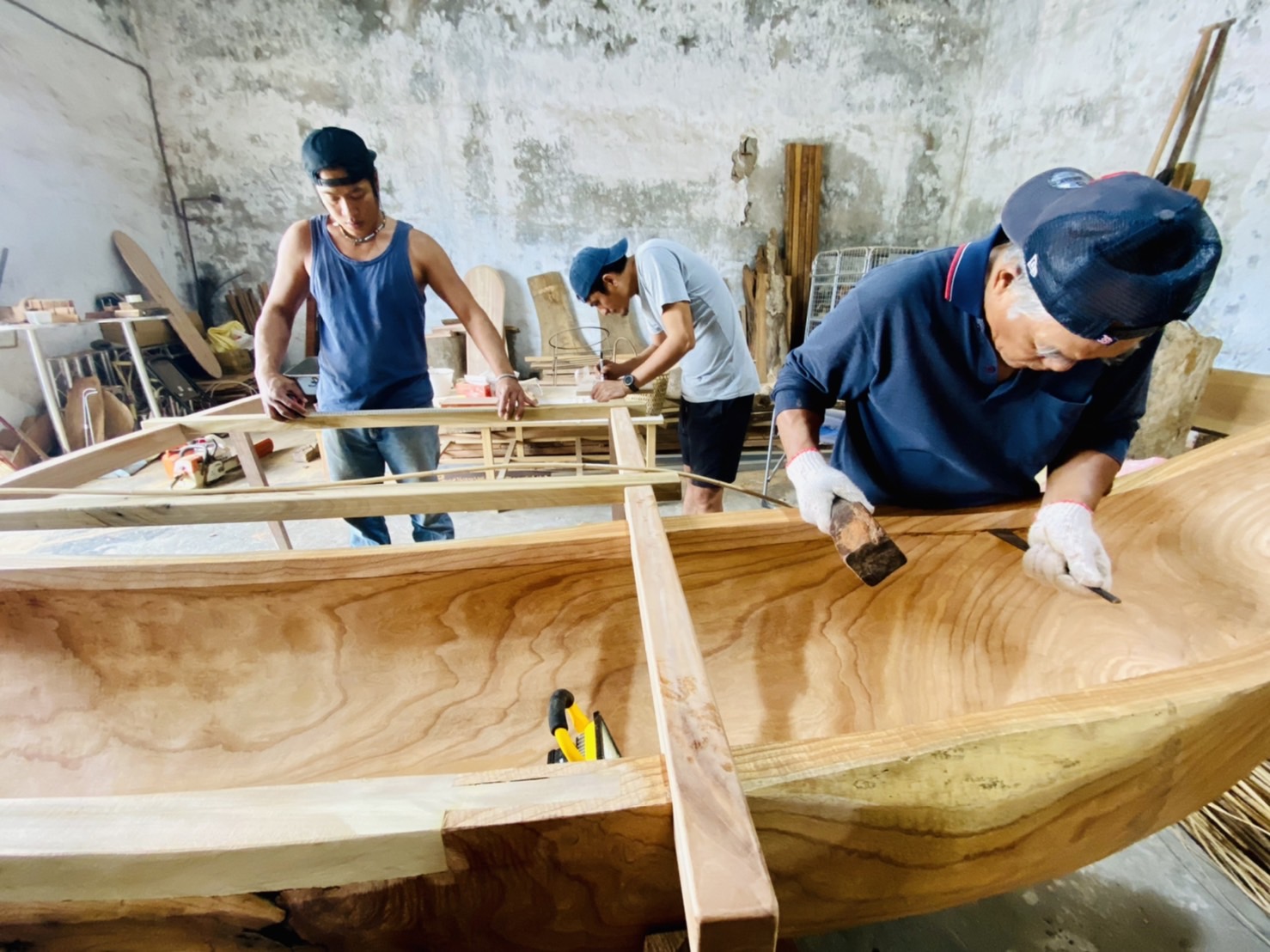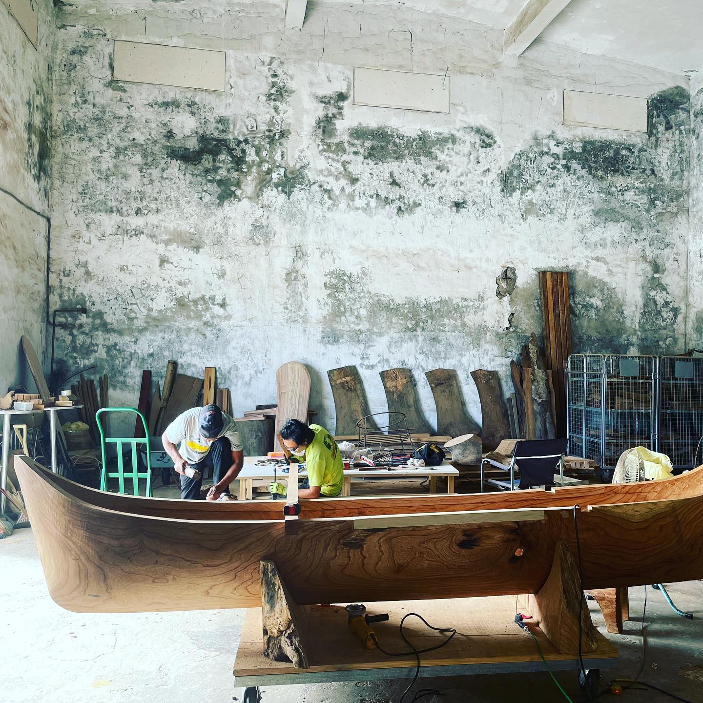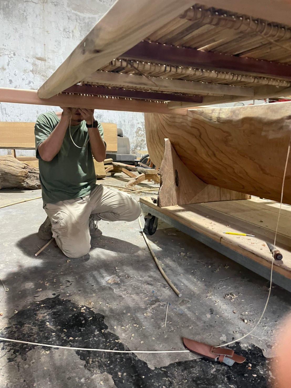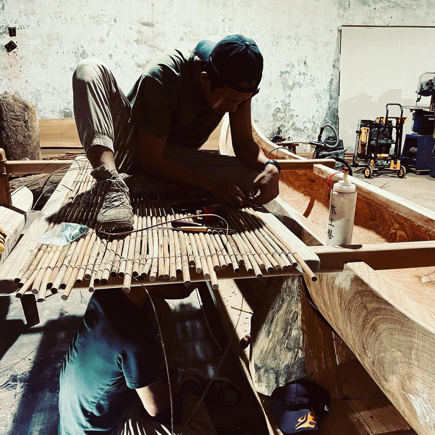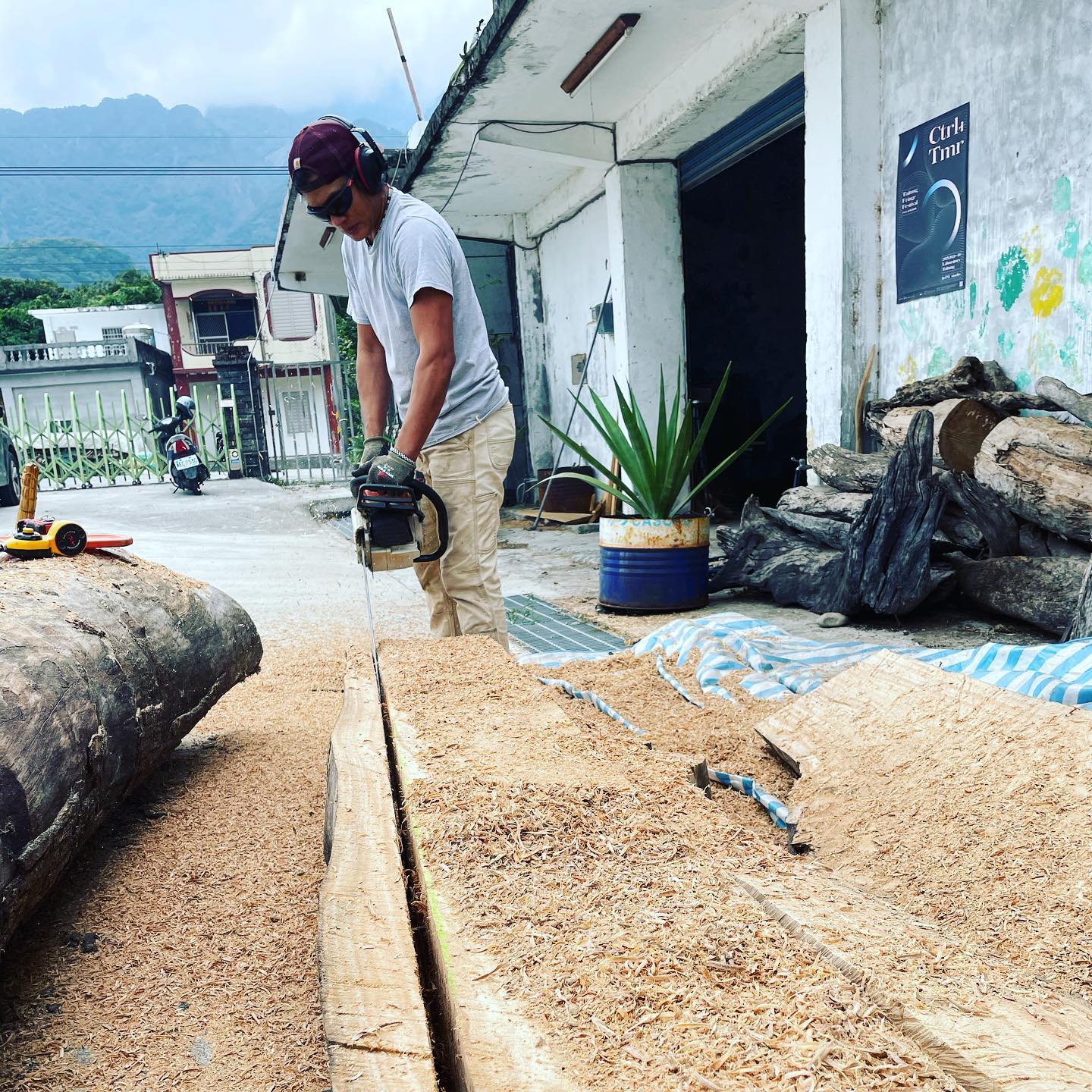 我們邀請藝術家拉飛.邵馬合作,去年的展演計畫已經創作了一艘阿美族獨木舟具象徵概念的主體,但離真正下海航行還缺了獨特的部件,台灣阿美族遠航的船體已經遠不可考,獨木舟最早的記錄也是在日治時期由日本人所記載,然而更早的海上活動工具卻已不復見。期望在此次的計劃下,能夠將獨木舟的舷外浮桿製作出來,完整船體的構造。 |
